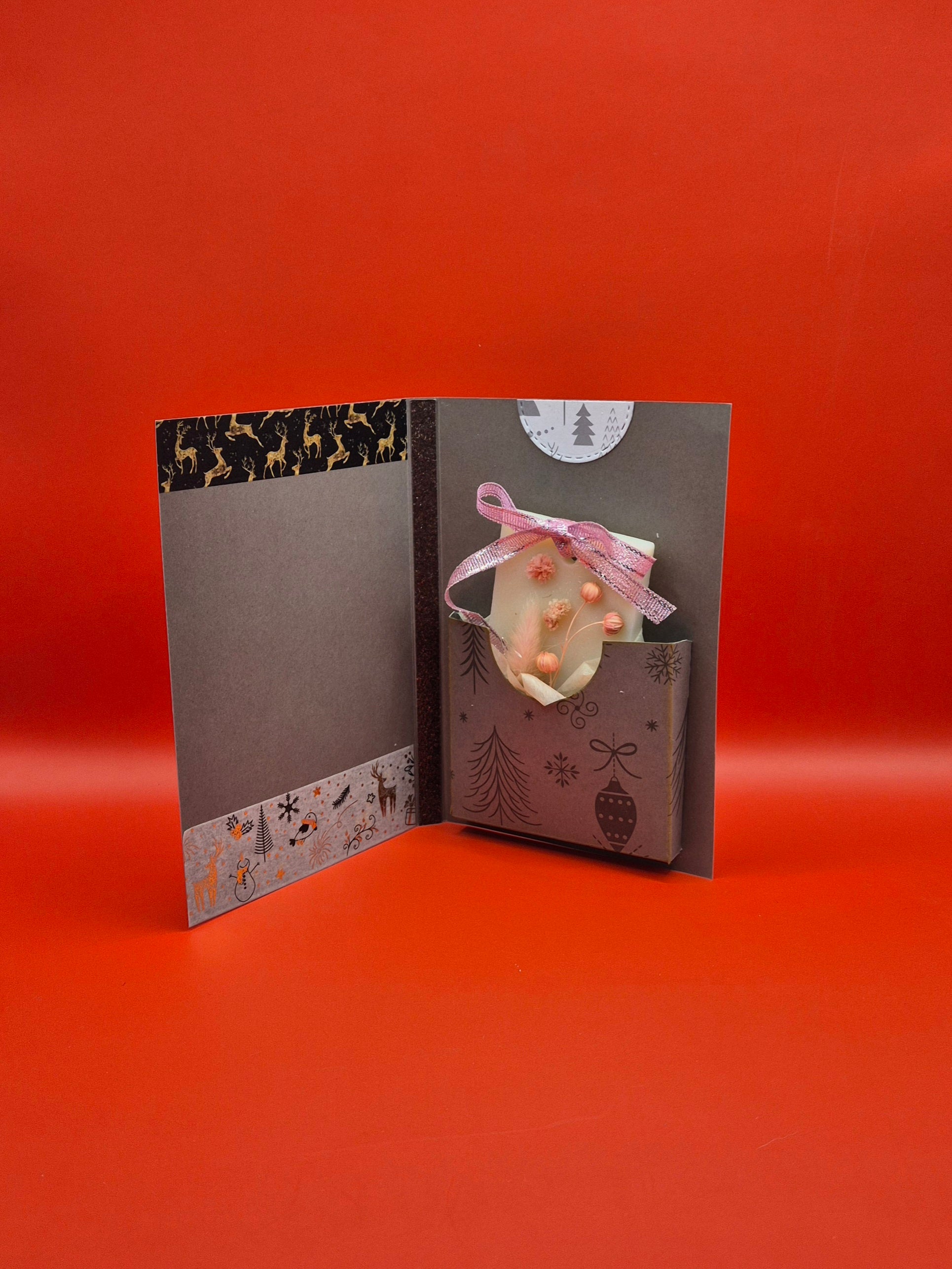 Découvrez nos cartes de Noël artisanales, entièrement faites à la main et décorées dans les plus belles couleurs de la saison. Chaque carte est unique et apporte une touche festive et élégante à vos attentions de fin d’année.