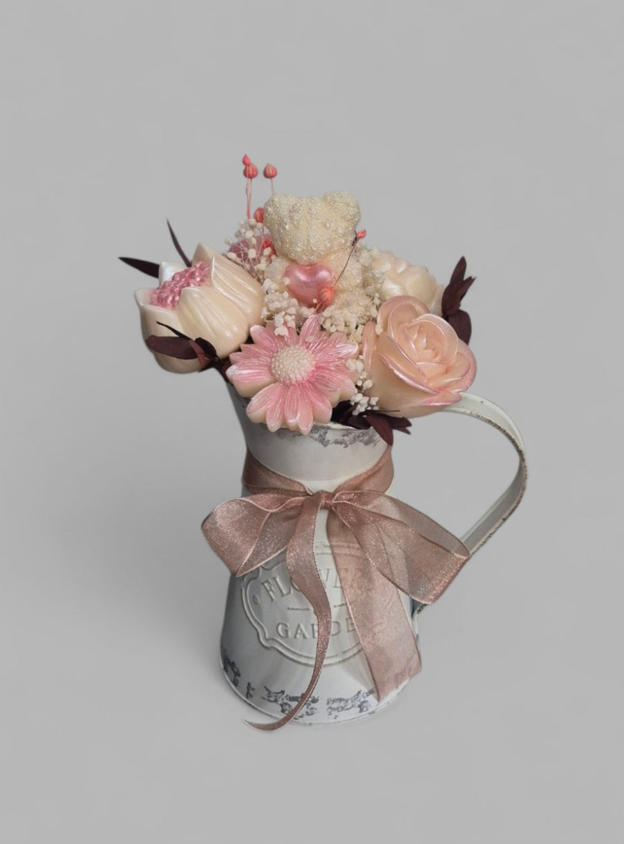 A bouquet of eternal flowers made from vegetable wax, entirely handmade and delicately scented with the captivating scents of Grasse. A unique decorative object that subtly diffuses its fragrance for months while beautifying your home.