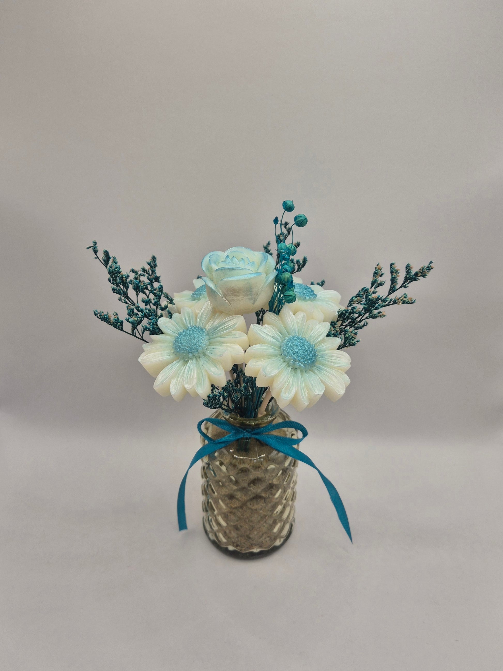 Un bouquet de fleurs éternelles en cire végétale, entièrement fait main et délicatement parfumé aux senteurs envoûtantes de Grasse. Un objet déco unique qui diffuse subtilement son parfum durant de long mois tout en embellissant votre intérieur.
