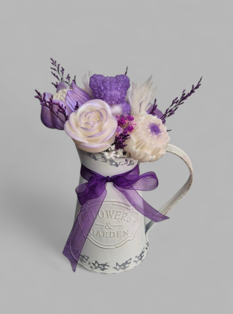 Un bouquet de fleurs éternelles en cire végétale, entièrement fait main et délicatement parfumé aux senteurs envoûtantes de Grasse. Un objet déco unique qui diffuse subtilement son parfum durant de long mois tout en embellissant votre intérieur.