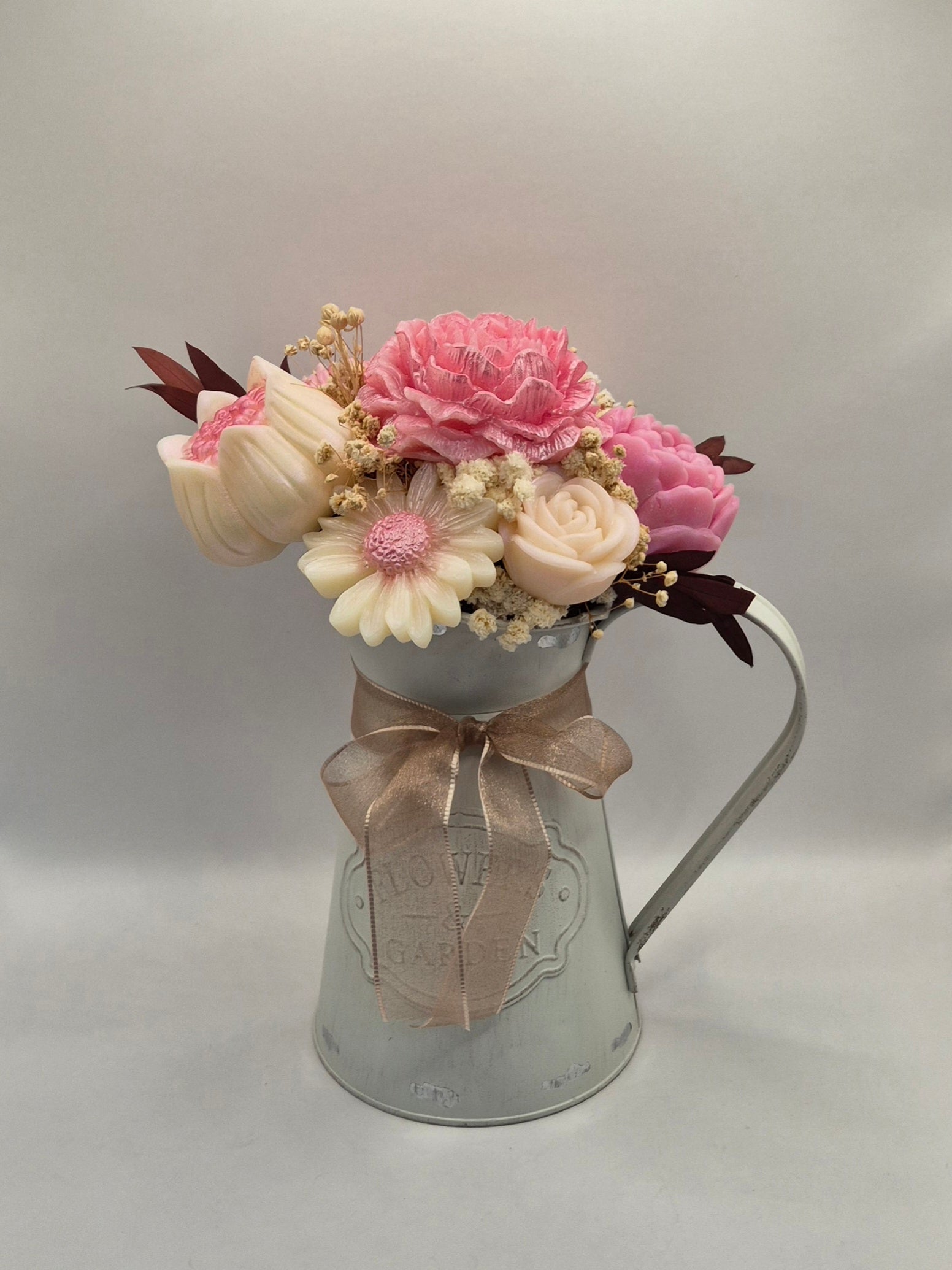 Un bouquet de fleurs éternelles en cire végétale, entièrement fait main et délicatement parfumé aux senteurs envoûtantes de Grasse. Un objet déco unique qui diffuse subtilement son parfum durant de long mois tout en embellissant votre intérieur.