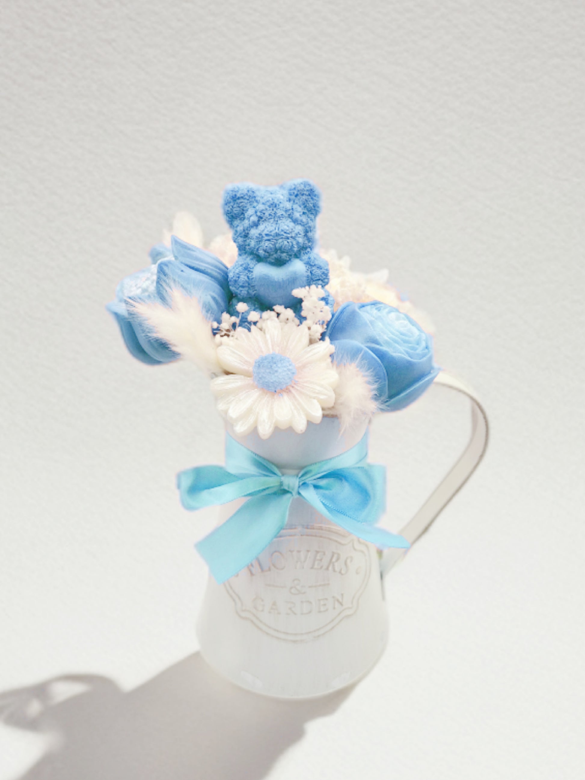 Un bouquet de fleurs éternelles en cire végétale, entièrement fait main et délicatement parfumé aux senteurs envoûtantes de Grasse. Un objet déco unique qui diffuse subtilement son parfum durant de long mois tout en embellissant votre intérieur.