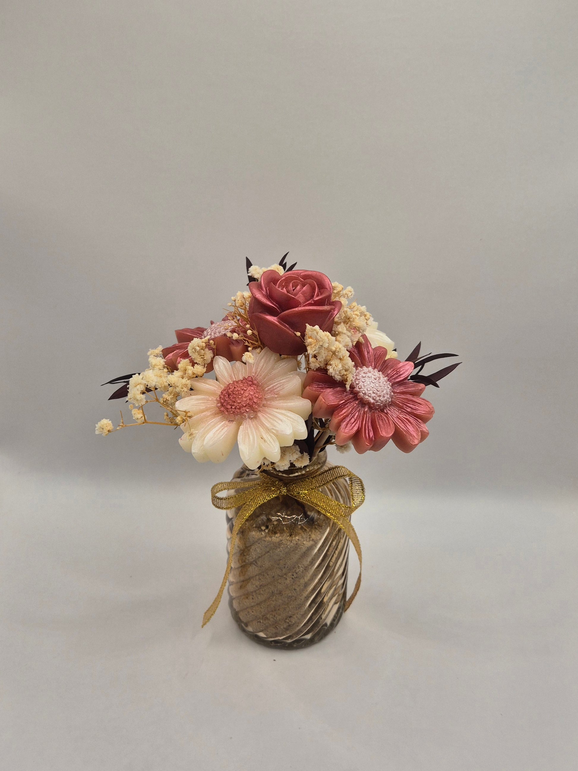 Un bouquet de fleurs éternelles en cire végétale, entièrement fait main et délicatement parfumé aux senteurs envoûtantes de Grasse. Un objet déco unique qui diffuse subtilement son parfum durant de long mois tout en embellissant votre intérieur.