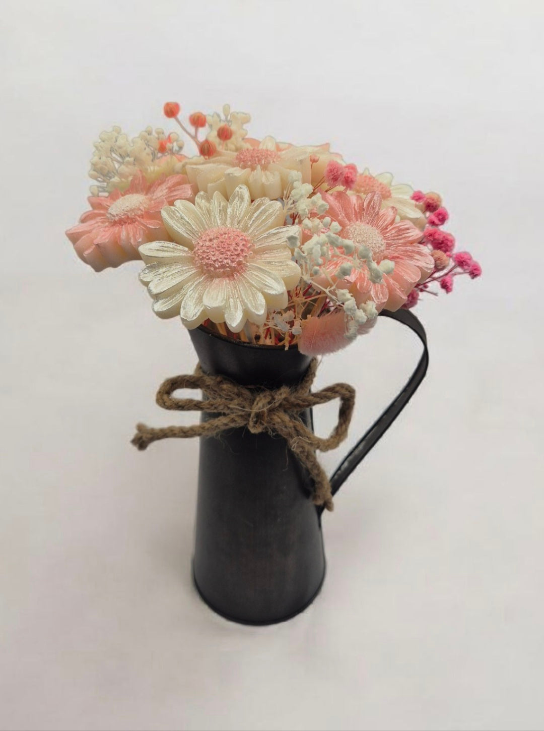 Un bouquet de fleurs éternelles en cire végétale, entièrement fait main et délicatement parfumé aux senteurs envoûtantes de Grasse. Un objet déco unique qui diffuse subtilement son parfum durant de long mois tout en embellissant votre intérieur.