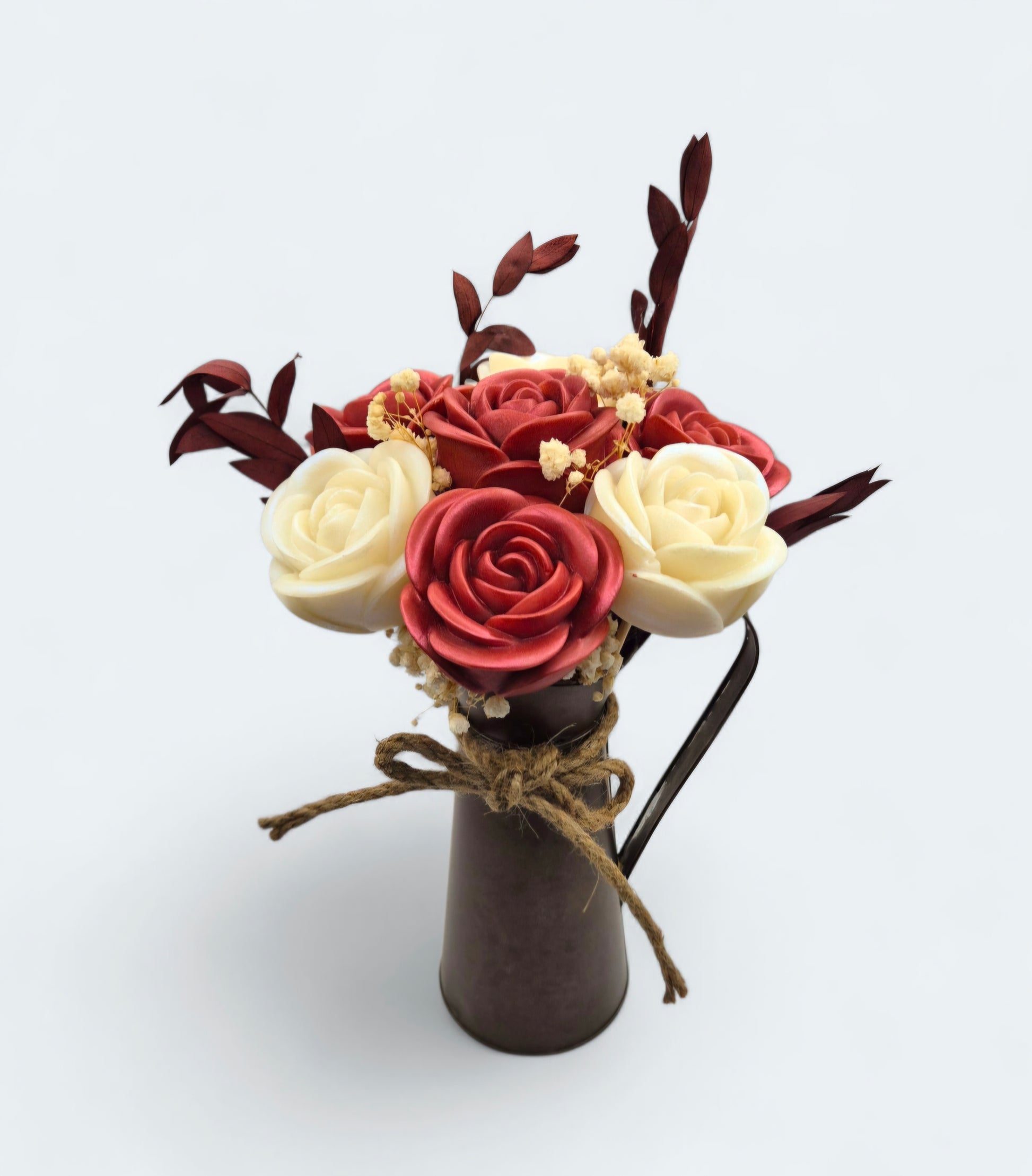 Un bouquet de fleurs éternelles en cire végétale, entièrement fait main et délicatement parfumé aux senteurs envoûtantes de Grasse. Un objet déco unique qui diffuse subtilement son parfum durant de long mois tout en embellissant votre intérieur.