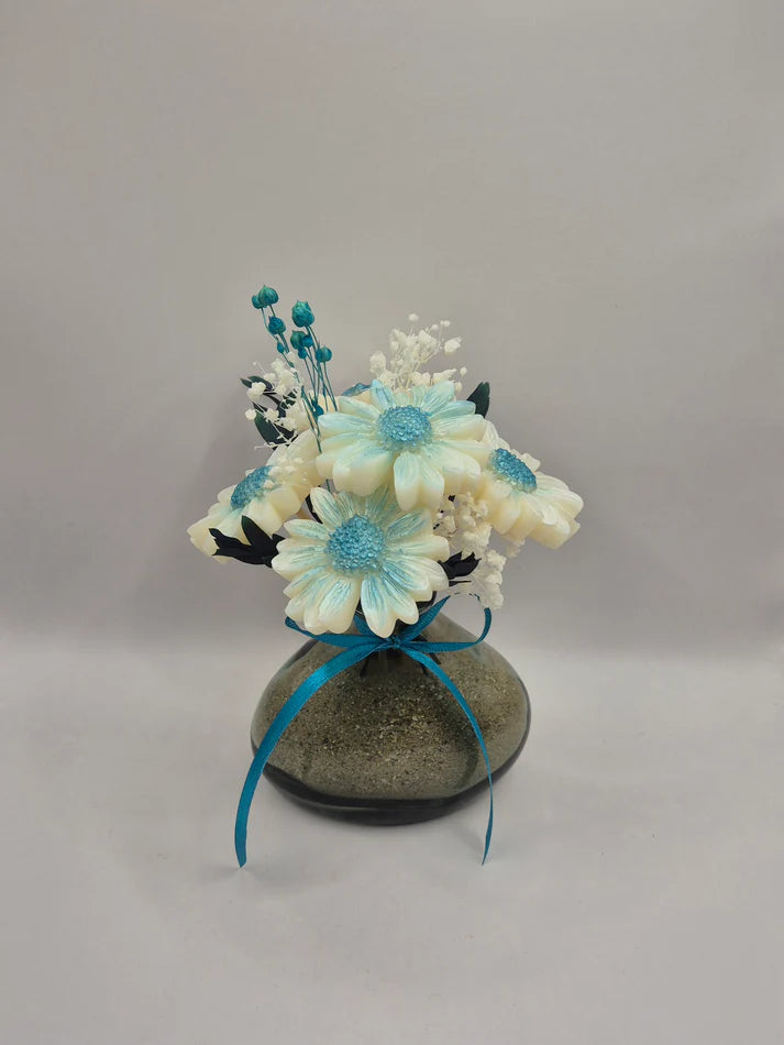 Un bouquet de fleurs éternelles en cire végétale, entièrement fait main et délicatement parfumé aux senteurs envoûtantes de Grasse. Un objet déco unique qui diffuse subtilement son parfum durant de long mois tout en embellissant votre intérieur.
